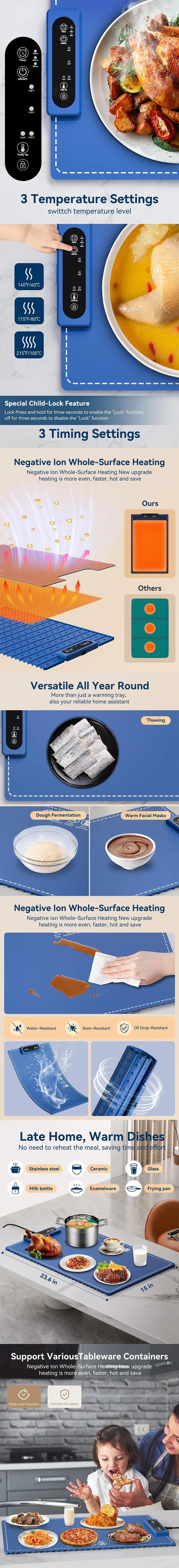 (4) Efficace : cette plaque chauffante intelligente est fabriquée en silicone, qui est non seulement sûre et facile à nettoyer, mais fournit également une excellente isolation thermique pour conserver vos aliments chauds et savoureux.